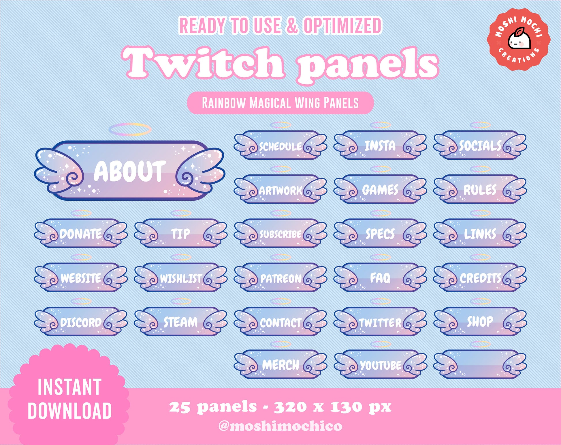 Twitch Panels - 25x Blue Magical Angel Wing Collection