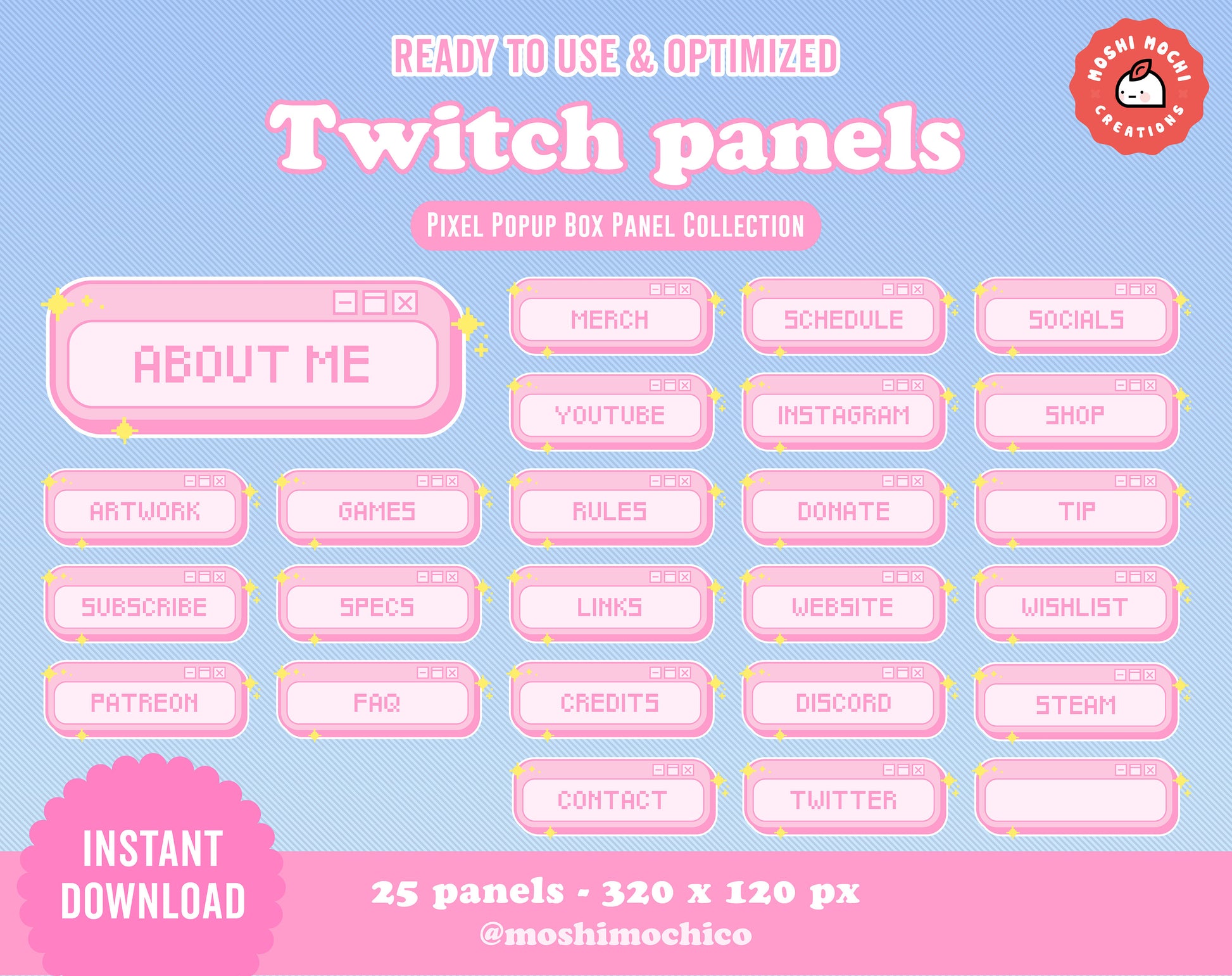Twitch Panels - 25x Pink Pixel Pop Up Box Collection