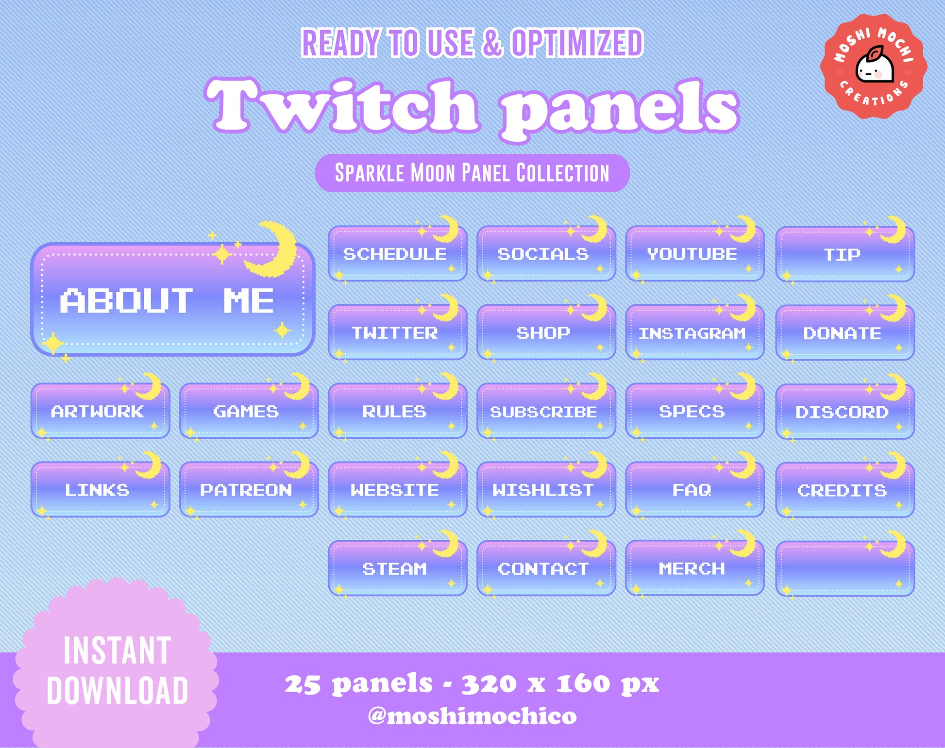 Twitch Panels - 25x Purple Pixel Moon Collection