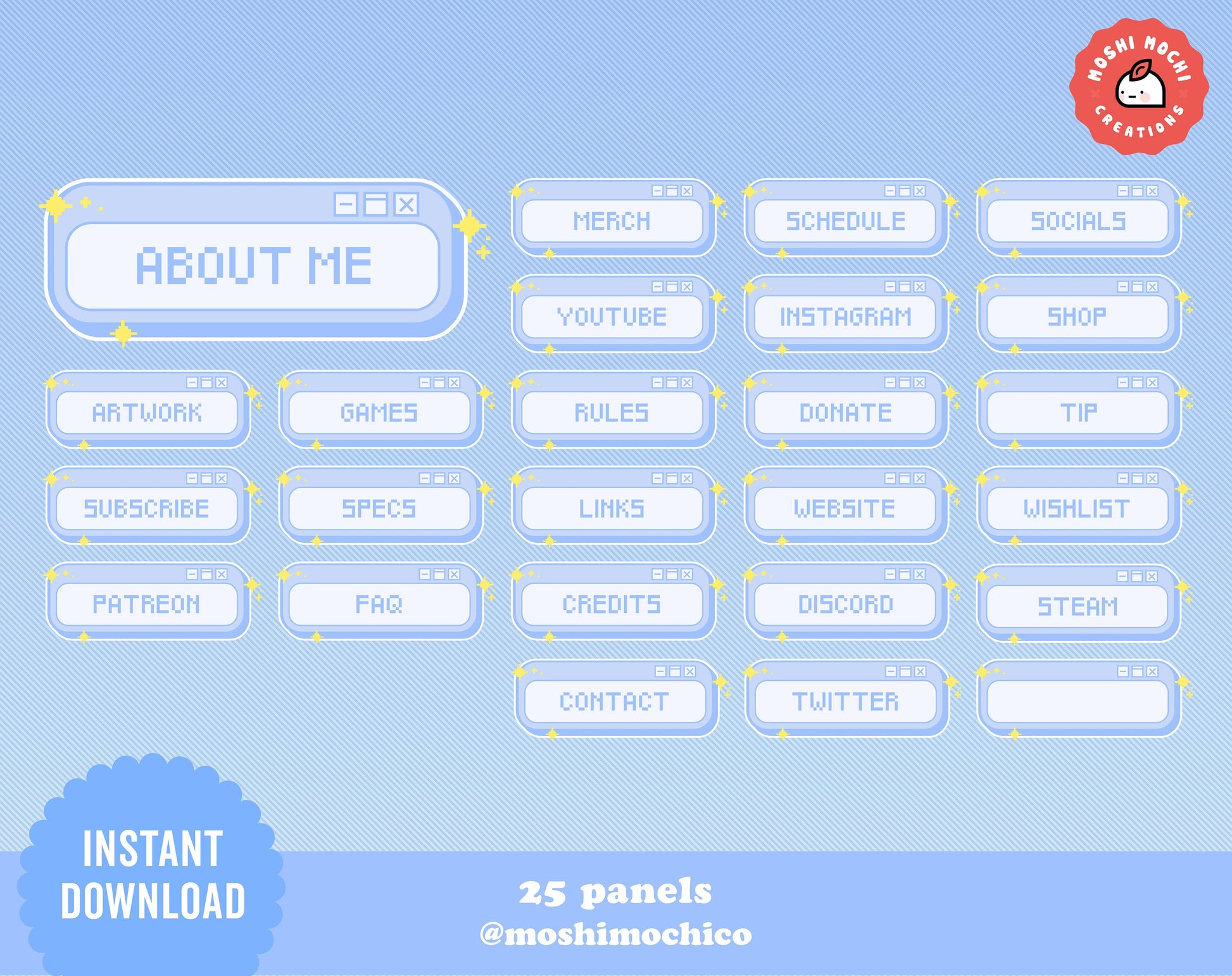 -25 blue pixel panels (320px x 120px)