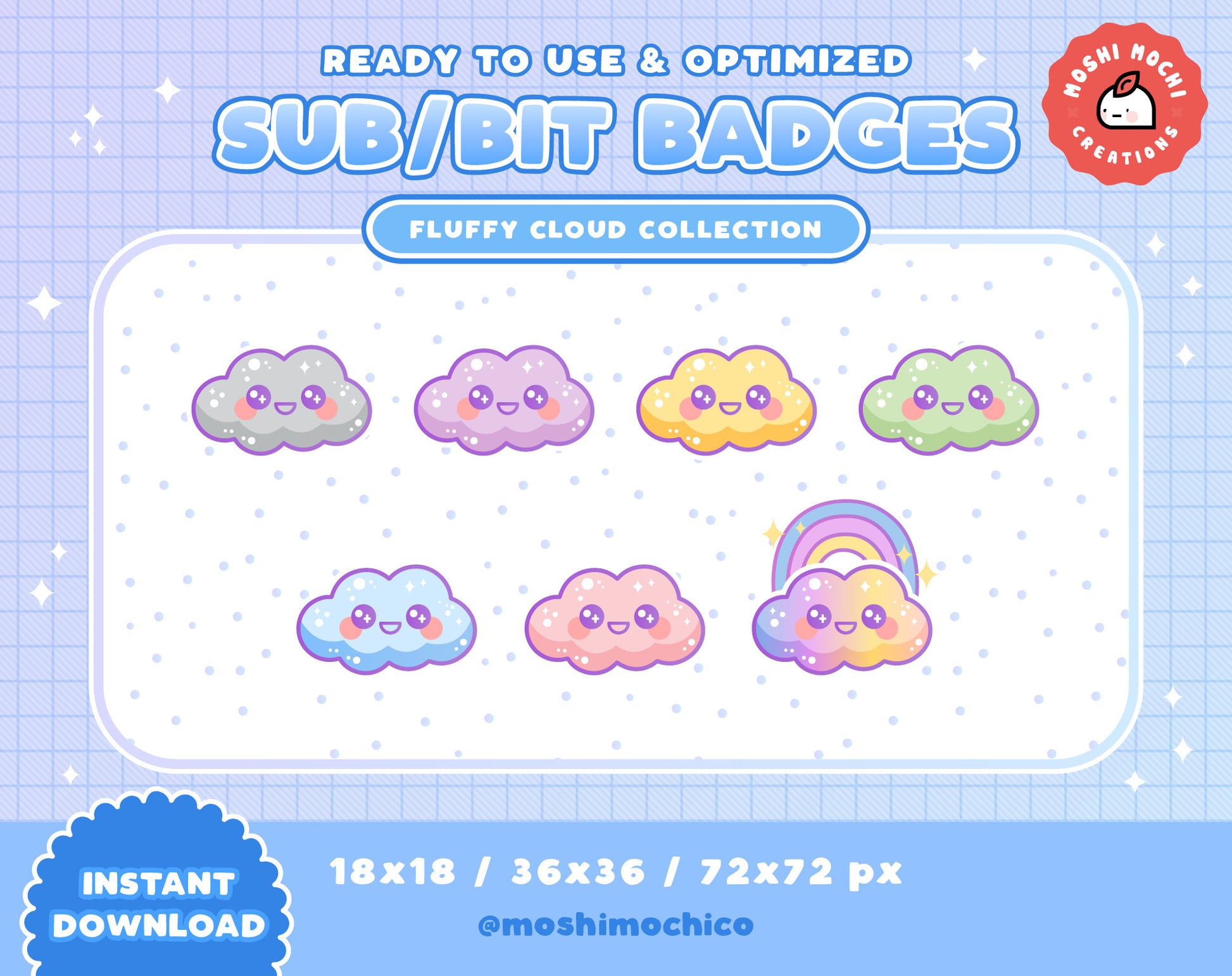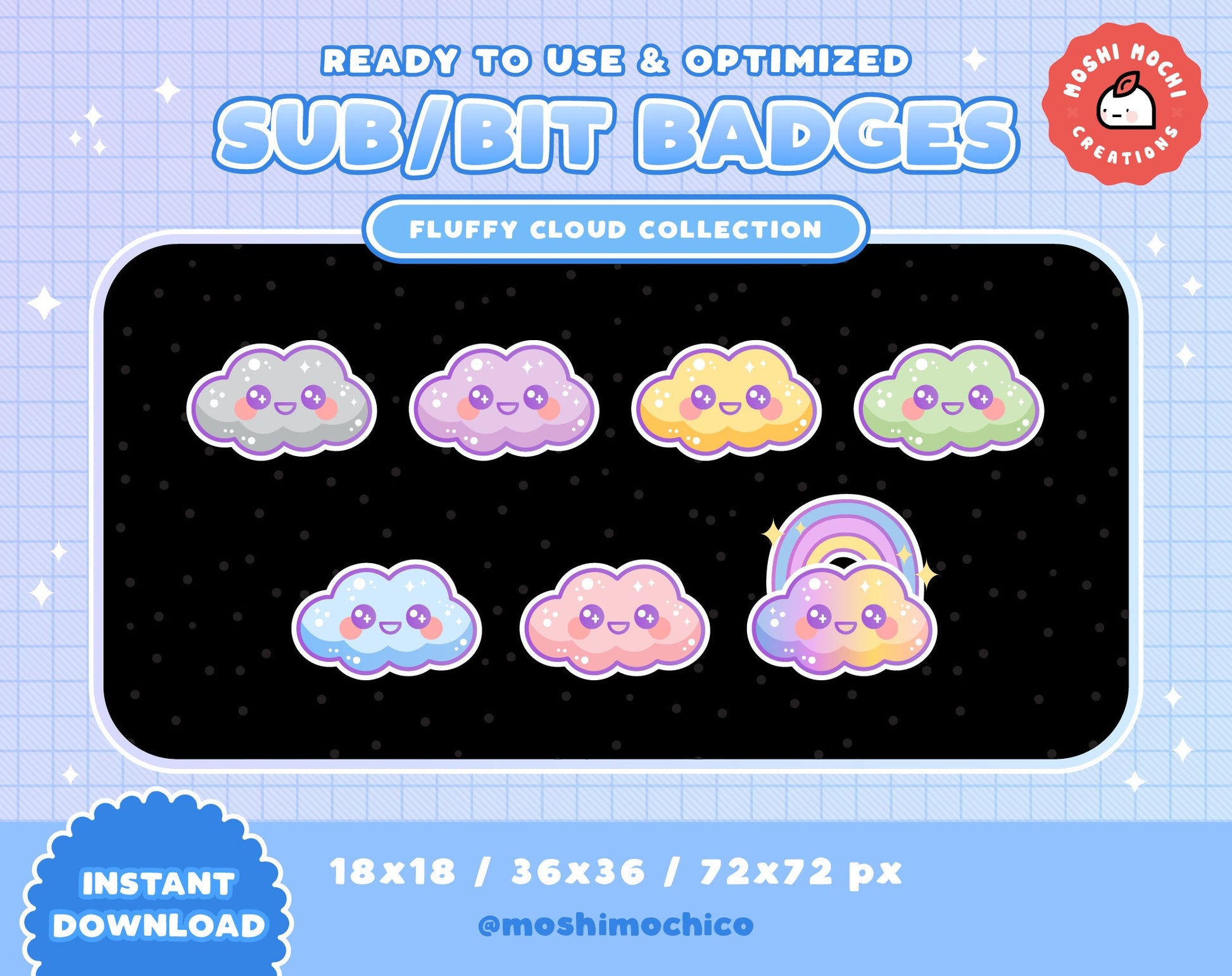 Twitch Sub Badges / Bit Badges - 7x Cute Glossy Fluffy Magical Cloud
