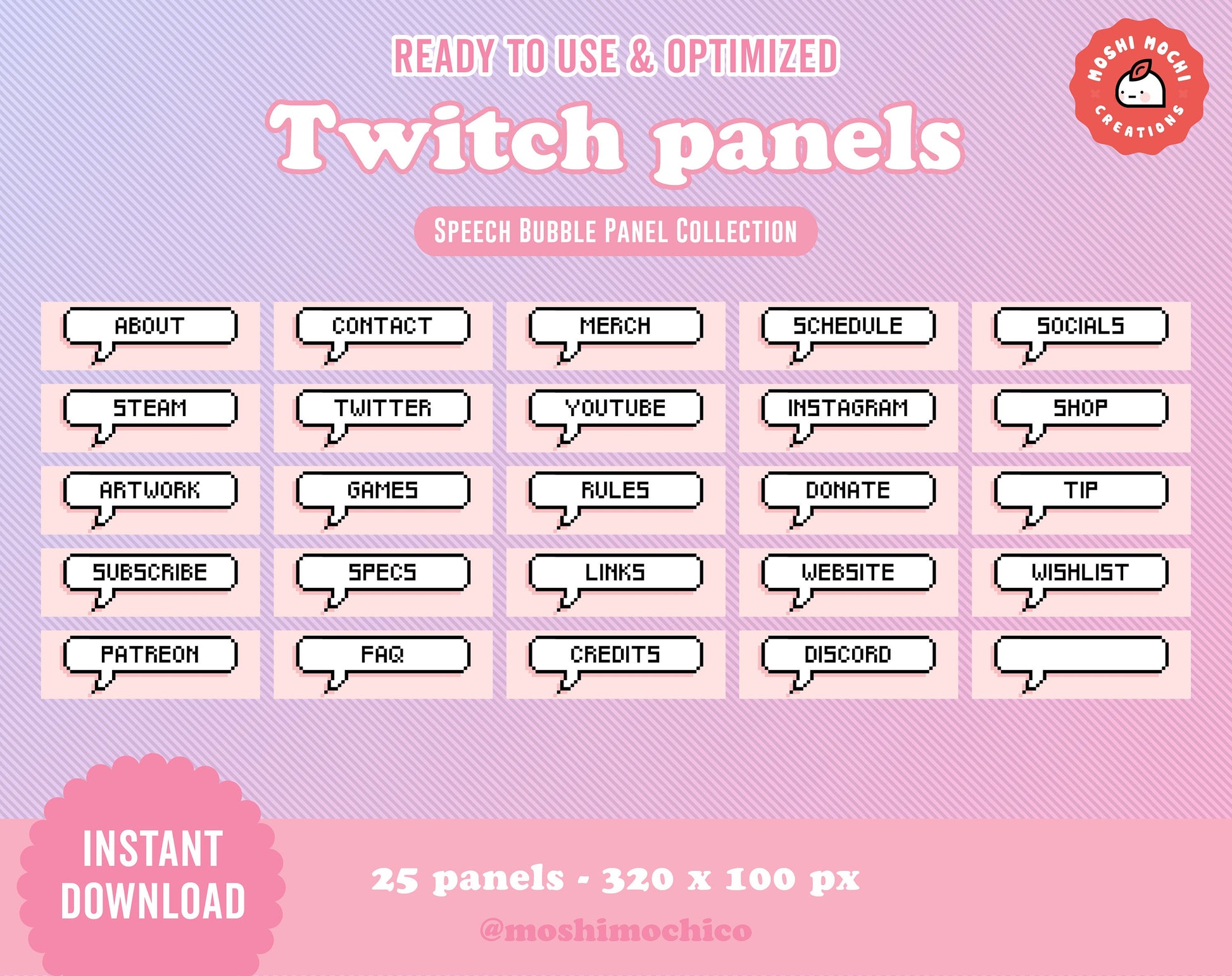 Twitch Panels - 25x Pink Pixel Speech Bubble Collection
