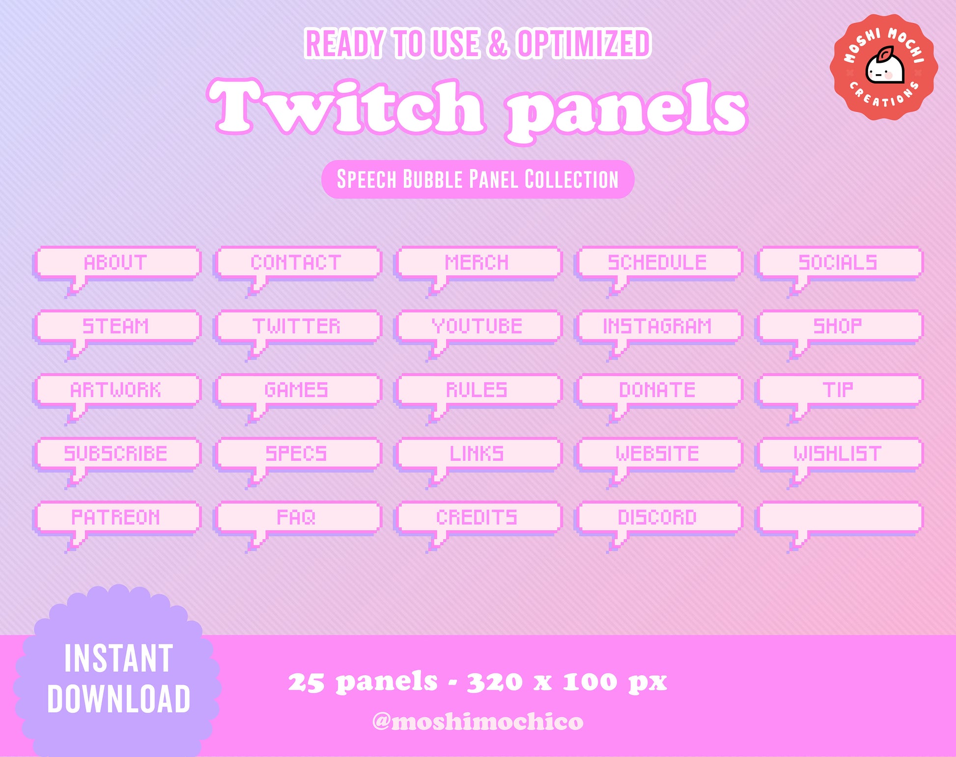 Twitch Panels - 25x Neon Pink Pixel Speech Bubble Collection