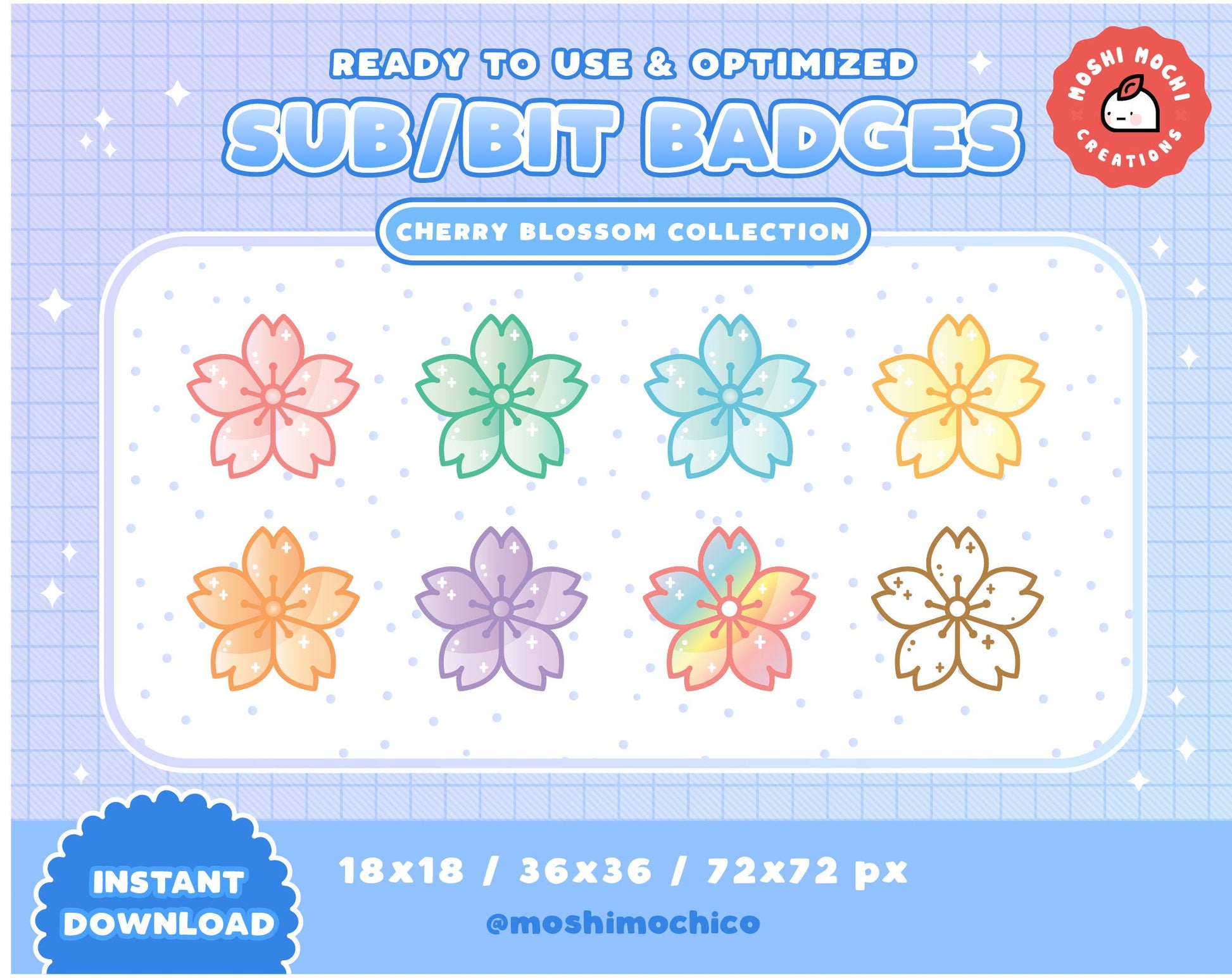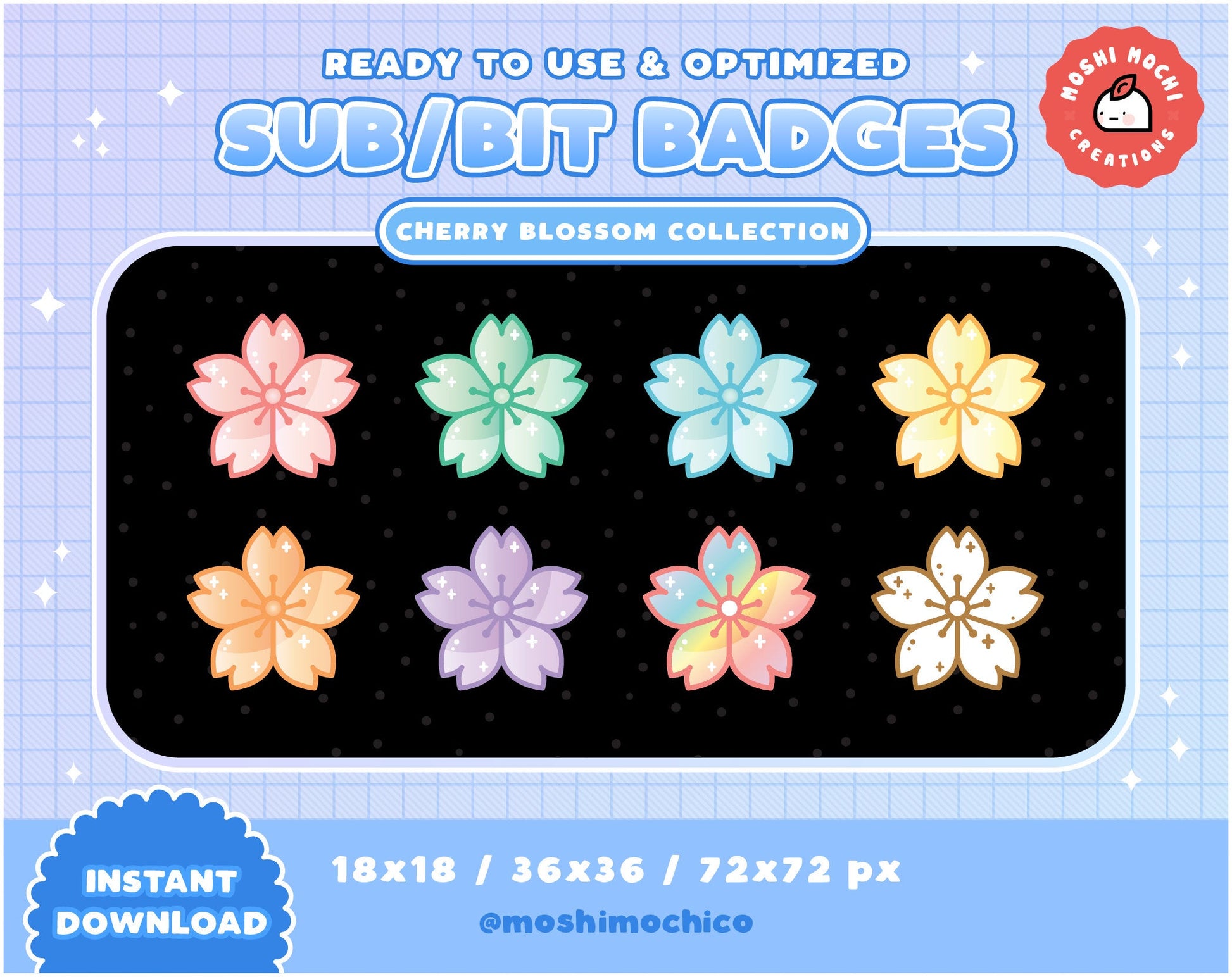 Twitch Sub Badges / Bit Badges - 8x Pastel Cherry Blossoms