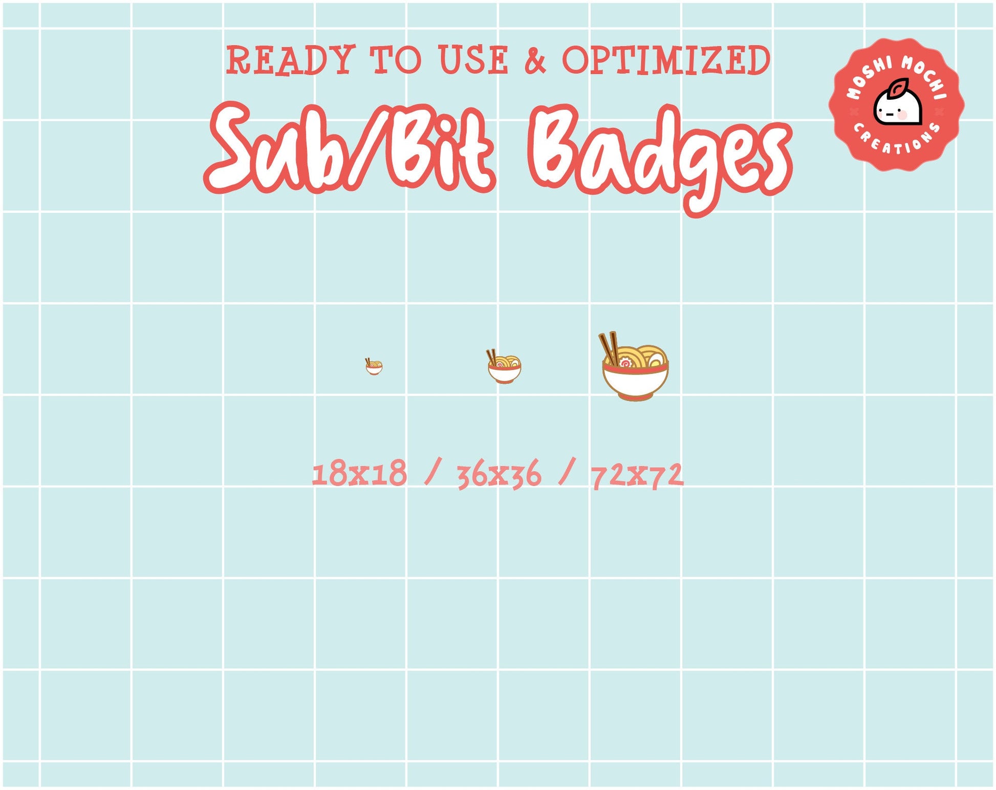 Twitch Sub Badges / Bit Badges - 8x Cute Ramen Bowls